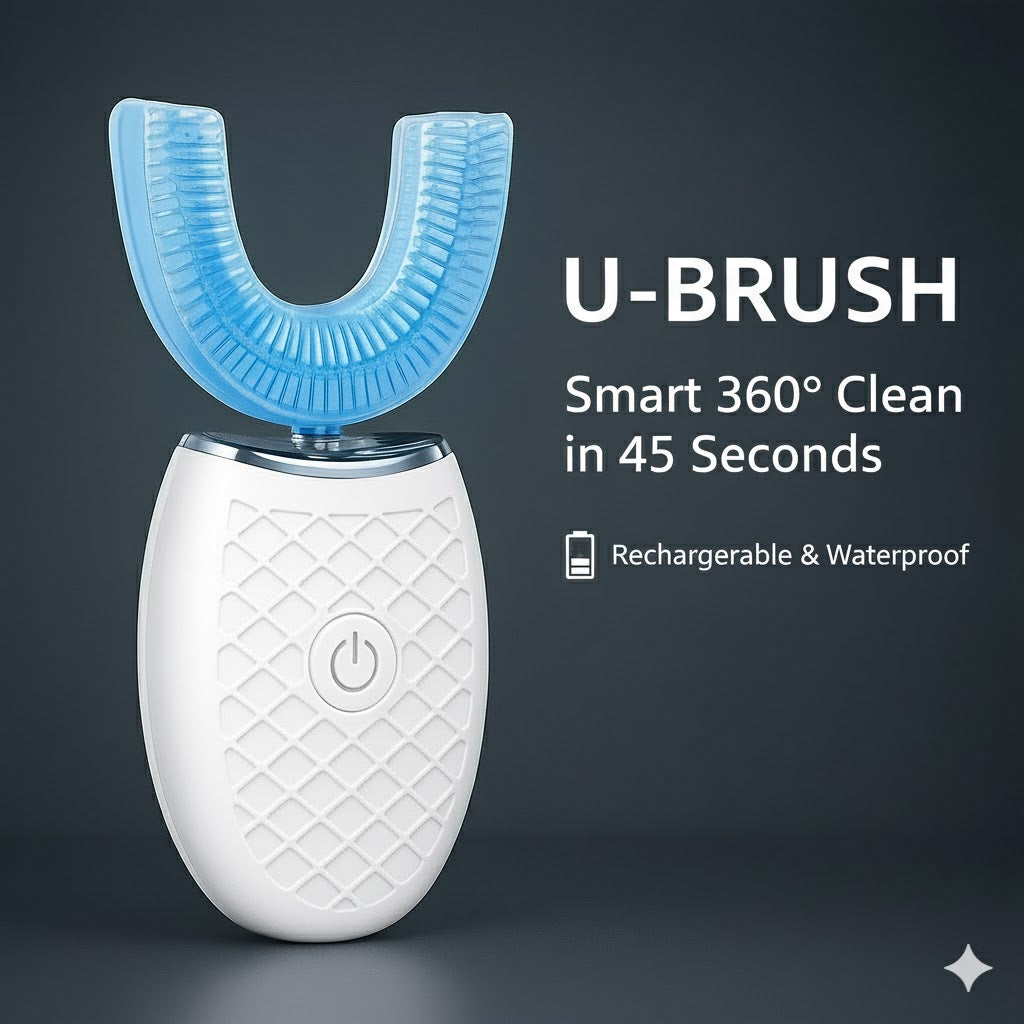 Meet the U-BRUSH, the next-generation U-shaped electric toothbrush redefining daily dental care. With advanced sonic technology and a 360° clean design, it delivers a deep, even clean in just 45 seconds — giving you a brighter, healthier smile with zero effort.